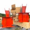 Dual-purpose: the bottom side is used to first make a perfectly straight end-cut, the jig is then refastened to the log to cut each side of the half dovetail joint with the top guides.